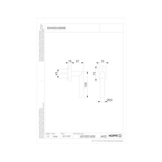 Fenstergriff E0400/US956 Stand.,ov.,7/32-42,F9714M