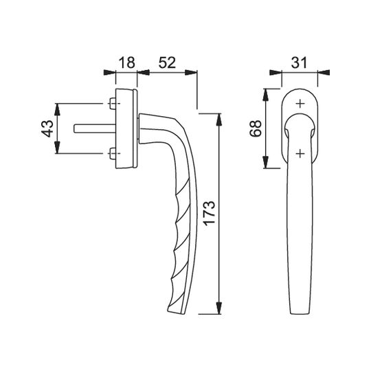 HOPPE Griff Atlanta PSK-0530/US952-1; Ausführung: Standard; Material: Aluminium; Norm: DIN EN 13126-3; Befestigungsart: verdeckt verschraubt; Befestigungstechnik: mit Stütznocken; Einsatzbereich: Parallelschiebekipp; Basis: Griff; Vierkant: 7 mm; DIN-Richtung: DIN Links-Rechts; Nockendurchmesser: 10 mm; Sockelbreite: 31 mm; Sockelhöhe: 68 mm; Sockelstärke: 18 mm; Befestigungsabstand: 43 mm; Funktion: Standard; Oberfläche: eloxiert; Farbton: stahlfarbig; Prüfung: RAL-GZ 607/9; Rastung: 90°; Lieferung: mit Schrauben,mit Vierkantstift; Aufdruck: mit Logo; Korrosionsbeständigkeit: Klasse 4; Sockelausführung: mit ovaler Rosette; Griffform: gebogen; Grifflänge: 173 mm; Griffhöhe: 52 mm; Zusatzinformation: integrierte Basis-Sicherheit; Stift vorstehend: 32-42 mm; Fensterwerkstoff: Holz,Aluminium,Kunststoff; Material Unterkonstruktion: Kunststoff; Technik: Secustik®,VarioFit®