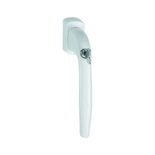 HOPPE Griff New York PSK-0810S/US10; Ausführung: VarioFit®,mit Druckzylinder,abschließbar; Material: Aluminium; Norm: DIN EN 13126-3,DIN EN 1627-1630 (RC1-6),DIN 18267; Befestigungsart: verdeckt verschraubt; Befestigungstechnik: mit Stütznocken; Einsatzbereich: Parallelschiebekipp; Basis: Griff; Material Unterkonstruktion: Kunststoff; Vierkant: 7 mm; DIN-Richtung: DIN Links-Rechts; Nockendurchmesser: 10 mm; Sockelbreite: 32 mm; Sockelhöhe: 62 mm; Sockelstärke: 18 mm; Befestigungsabstand: 43 mm; Funktion: Standard; Oberfläche: beschichtet; Farbton: verkehrsweiß; Prüfung: RAL-GZ 607/9; Prüfung Abdrehen/Abreißen: 100 N·m; Rastung: 90°; Schließfunktion: Wendeschlüssel,gleichschließend; Lieferung: mit Schrauben,mit Vierkantstift; Griffform: gebogen; Griffhöhe: 51 mm; Grifflänge: 174 mm; Stift vorstehend: 32-42 mm; Fensterwerkstoff: Holz,Aluminium,Kunststoff; Technik: Secustik®,Secu100®