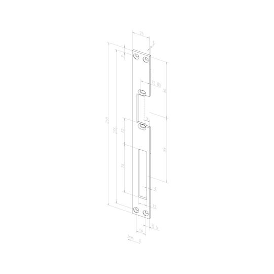 effeff Flachschließblech 051; Produkttyp: Flachschließblech; Produkttyp (Hersteller): Flachschließblech; Ausführung: für Türöffner; Ausfräsung: mit Fallen und Riegelausschnitt; Material: Edelstahl; Einsatzbereich: Türrahmen; Form: kantig; DIN-Richtung: DIN Rechts; Farbton: edelstahl; Oberfläche: geschliffen; Schließblechbreite: 25 mm; Schließblechlänge: 250 mm; Schließblechstärke: 3 mm