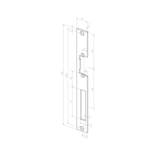 effeff Flachschließblech 426; Produkttyp: Flachschließblech; Produkttyp (Hersteller): Flachschließblech; Ausführung: für Türöffner; Ausfräsung: mit Fallen und Riegelausschnitt; Material: Stahl; Einsatzbereich: Türrahmen; Form: kantig; DIN-Richtung: DIN Links-Rechts; Oberfläche: verzinkt,geschliffen; Schließblechbreite: 25 mm; Schließblechlänge: 250 mm; Schließblechstärke: 3 mm