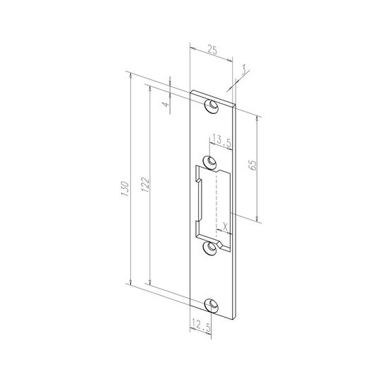 effeff Flachschließblech 688; Produkttyp: Flachschließblech; Produkttyp (Hersteller): Flachschließblech; Ausführung: für Türöffner,kurz; Ausfräsung: mit Fallenausschnitt; Material: Edelstahl; Einsatzbereich: Türrahmen; Form: kantig; DIN-Richtung: DIN Links-Rechts; Farbton: edelstahl; Oberfläche: geschliffen; Schließblechbreite: 25 mm; Schließblechlänge: 130 mm; Schließblechstärke: 3 mm