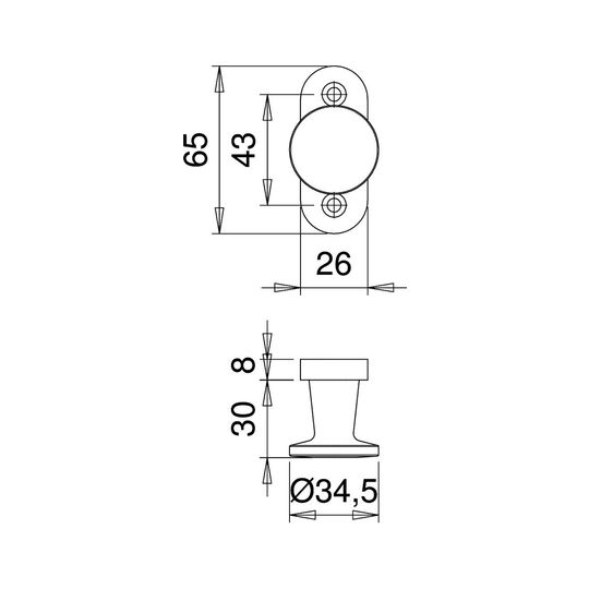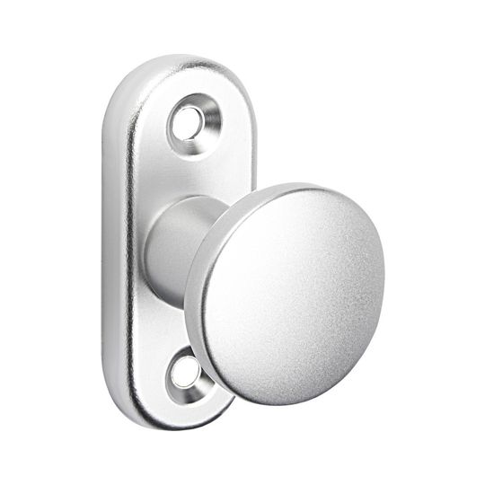 EDI Balkontürknopf 6041; Material: Aluminium; Abdeckung: auf Rosette; Befestigungsart: sichtbar verschraubt; Befestigungstechnik: ohne Stütznocken; Basis: Balkontürknopf; DIN-Richtung: DIN Links-Rechts; Einsatzbereich: Fenstertür; Farbton: silberfarbig; Oberfläche: eloxiert; Knopfform: rund; Knopfdurchmesser: 34,5mm; Knopfhöhe: 30mm; Sockelhöhe: 65mm; Sockelbreite: 26mm; Sockelstärke: 8mm; Befestigungsabstand: 43mm; Lieferung: inklusive Schrauben; Form Rosette: oval; Lagerung: fest; Modellnummer: 6041