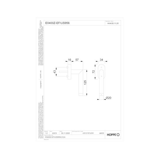 Funk-Fenstergriff E0400Z-EF/US956 oval ,7/32-42,F69