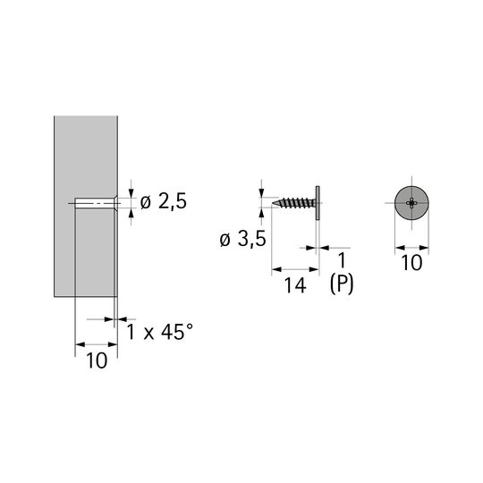 Gegenplatte Push to open zum Anschrauben, 2,5 x 10 mm