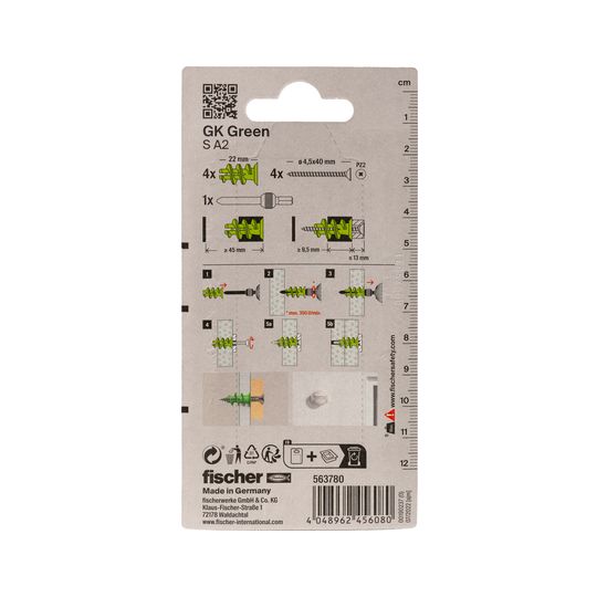 Max. Last in Gipskartonplatten 9,5 mm7 kg