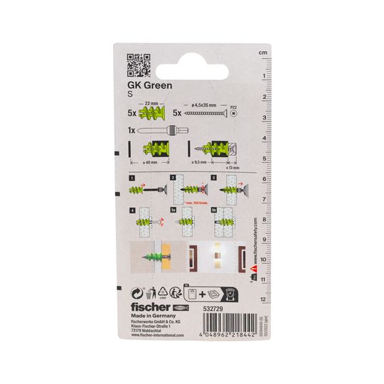 Gipskartondübel GK Green S mit Schraube,22mm,Kunststoff,VE 5
