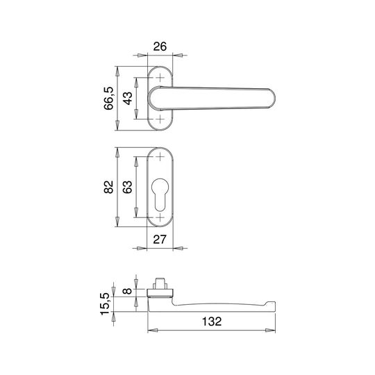 Griffgarnitur,Profilzylinder gelocht 1002/2793,Aluminium,verkehrsweiß