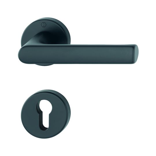 HOPPE Drückergarnitur Hamburg 1700/42KB/42KBS; Produkttyp: Drückergarnitur; Produkttyp (Hersteller): Drückergarnitur; Ausführung: Rosette; Befestigungsart Drückerrosette (außen): aufsteckbar; Befestigungsart Drückerrosette (innen): aufsteckbar; Befestigungsart Schlüsselrosette (außen): aufsteckbar; Befestigungsart Schlüsselrosette (innen): aufsteckbar; Befestigungstechnik: mit Stütznocken; Form Drückerrosette: rund; Form Schlüsselrosette (außen): rund; Form Schlüsselrosette (innen): rund; Vierkant: 8 mm; Material: Aluminium; Form Türgriff (innen): L-Form; Form Türgriff (außen): L-Form; Durchmesser Schlüsselrosette: 52 mm; Länge Türgriff (innen): 129; Länge Türgriff (außen): 129; Höhe Türgriff (innen): 51; Höhe Türgriff (außen): 51; Durchmesser Drückerrosette (außen): 52 mm; Durchmesser Drückerrosette (innen): 52 mm; Höhe Drückerrosette (außen): 9 mm; Höhe Drückerrosette (innen): 9 mm; Höhe Schlüsselrosette (außen): 9 mm; Höhe Schlüsselrosette (innen): 9 mm; Lagerung: wartungsfreies Gleitlager,mit Rückholfeder; Einsatzbereich: Objekttür; Türart: Vollblatt; Türwerkstoff: Holz,Stahl; Lochung: Profilzylinder gelocht; DIN-Richtung: DIN Links-Rechts; Farbe: schwarz; Farbton: schwarz matt; Oberfläche: eloxiert; Ausführung Vierkant: Vierkantstift; Türstärke min.: 37 mm; Türstärke max.: 42 mm; Norm: DIN EN 1906