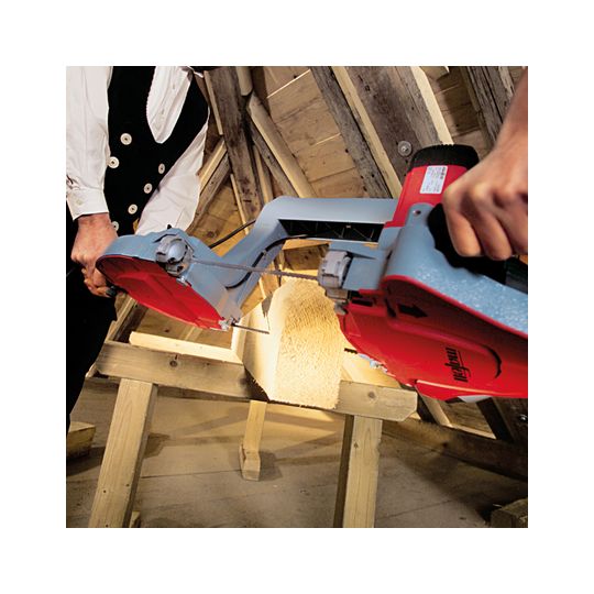 Die Handbandsäge Z 5 Ec ist das innovative Nachfolgermodell der legendären Z 3. Sie bestecht dank des CUprex Hochleistungsmotors und der Magnesium-Druckguss-Bauteile durch geringeres Gewicht (13,7 kg), gesteigerte Leistung, ein noch höheres Drehmoment sowie durch exzellentes Handling. Mit kugelgelagerten Sägebandführungen für hervorragenden Bandlauf und somit für optimalen Schnitt. Maximal 8 mm-Sägebänder für optimale Flexibilität beim Schweifen und Profilieren von Pfetten und Sparren. Für große Materialstärken verfügt die kompakte Z 5 Ec über satte 305 mm Schnitttiefe. Die für MAFELL Handbandsägen typische Präzision sorgt auch bei der Z 5 Ec für ein ausgezeichnetes Schnittbild und perfekte Rechtwinkeligkeit der Schnitte. Die Kühlluft des Hochleistungsmotors wird zum Freiblasen der Anrisslinie genutzt. Das Resultat: Keine Späne in Kopfhöhe und immer klare Sicht auf den Anriss.