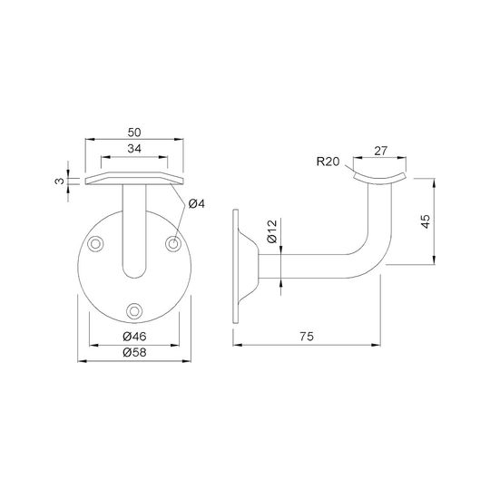 Handlaufst.,4524,mit gewölbter Auflage Messing,messing poliert,Wandabst.75mm