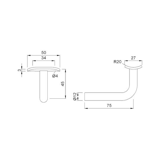Handlaufst.,4526,mit gewölbter Auflage Stahl,stahl blank,Wandabst.75mm