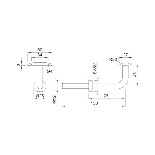 Handlaufst.,4528,mit gewölbter Auflage Stahl,EV1 einbrennlackiert,Wandabst.75mm