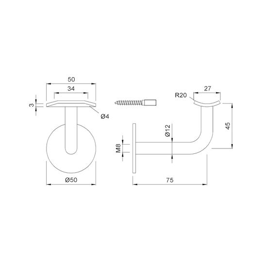 Handlaufst.,4570,mit gewölbter Auflage Stahl,blau verzinkt,Wandabst.75mm