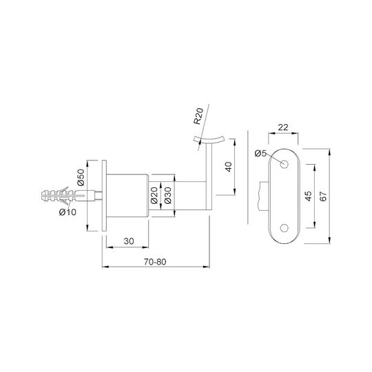 Handlaufst.,4680,mit gewölbter Auflage ER,edelst. geschliffen, Wandabst.70-80mm