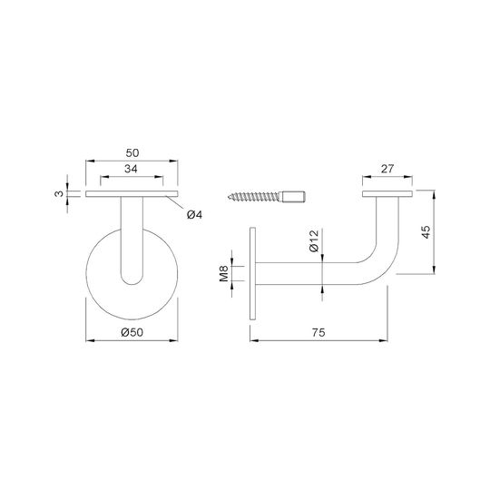 KWS 4571 Handlaufstütze St. silbern für 75 mm WandabSt.