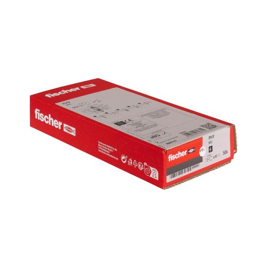 Der fischer Hohldeckenanker FHY ist ein Innengewindeanker aus galvanisch verzinktem Stahl. Der FHY wird in der Vorsteckmontage mit der Hand ins Bohrloch gesetzt und mit dem Hammer bündig zur Oberfläche des Baustoffes eingetrieben. Beim Aufbringen des Drehmoments wird der Konus in die Spreizhülse gezogen. Im Hohlraum spreizt diese auf und im Vollbaustoff verspannt sich diese gegen die Bohrlochwand. Der fischer Hohldeckenanker FHY ist ideal für die Befestigung von Rohrleitungen, Kabeltrassen, Lüftungsleitungen in Spannbeton-Hohlplattendecken im Innenbereich.