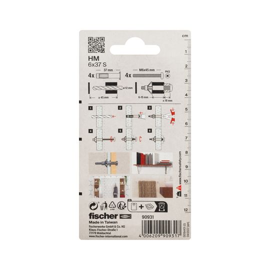 Hohlraum-Metalldübel HM 6x37,m.metrischer Schraube