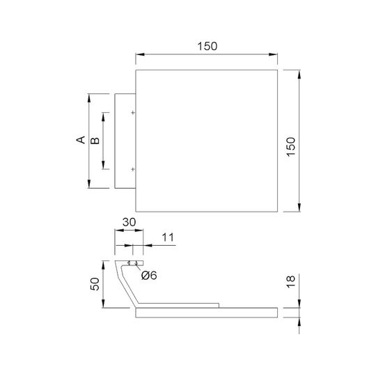 HT-Griffplatte, 8210, Quadrat, BA50, Ø 18, Aluminium silberfarbig