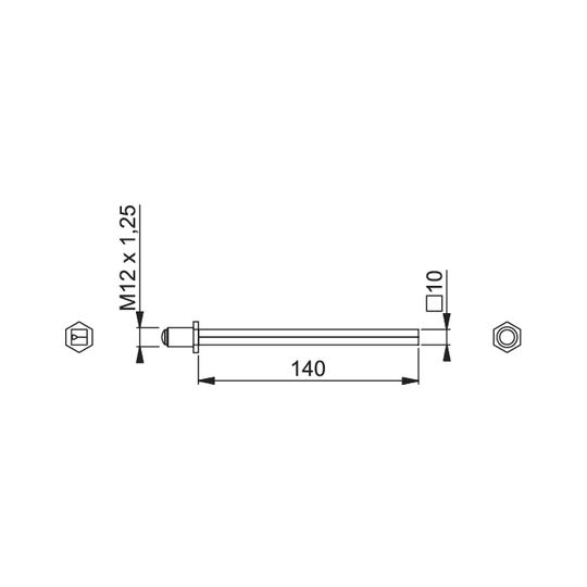 HOPPE Rollenwechselstift FDW; Produkttyp: Rollenwechselstift; Produkttyp (Hersteller): Wechselstift; Gewinde: M12; Material: Eisen; Oberfläche: verzinkt; Einsatzbereich: Türknopf,Türdrücker; Vierkant: 10 mm; Länge: 140 mm; Türstärke min.: 97 mm; Türstärke max.: 118 mm
