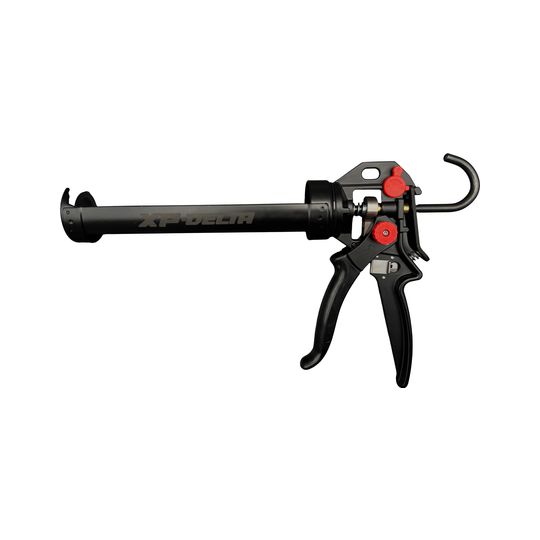 Profi-Kartuschenpresse XP-Delta, Drehbare Schale und Leiterhaken • Abzug und Griff gummiert • Schub- und Antriebsteile korrosionsgeschützt durch Speziallegierung • Aktivierbare Nachlaufstopp-Funkti...