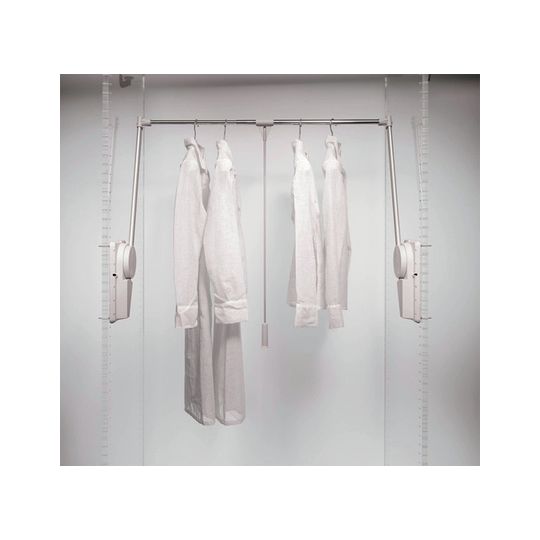 Der einzige Kleiderlift mit „Tragkraftregler“ für sämtliche Hebebedürfnisse. Diese Tragkraftregulierung ermöglicht es, die Rückschwenkunterstützung der Kleiderlast anzupassen. Zusätzlich kann die M...
