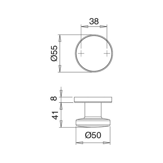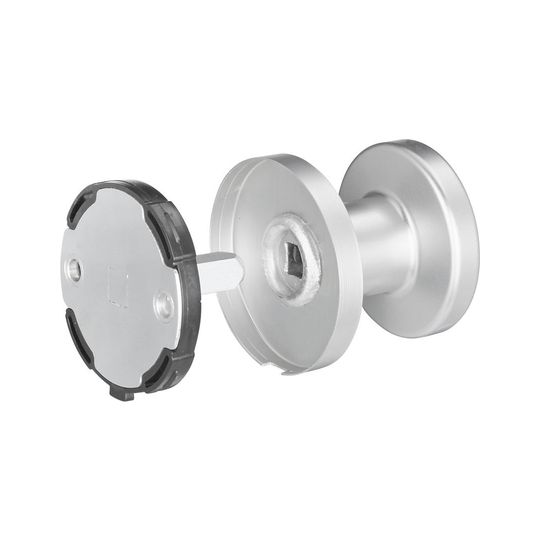 Türknopf festdrehbar auf Rosette Ø 55 mm zur einseitigen Verschraubung.