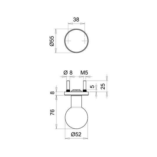 Türknopf festdrehbar auf Rosette Ø 55 mm zur gegenseitigen Verschraubung. Innenrosette mit Durchgangs-Nocken