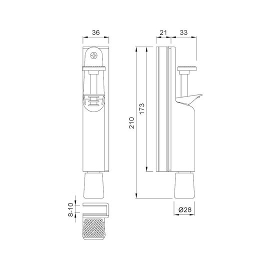 OT-Türfeststeller, mit Tretbolzen, 1134, Hub 50mm, Messing, messing poliert