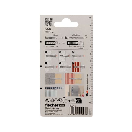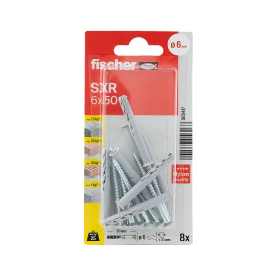 Langschaftdübel SXR 6x50,m.Senkkopfschraube,VE 8