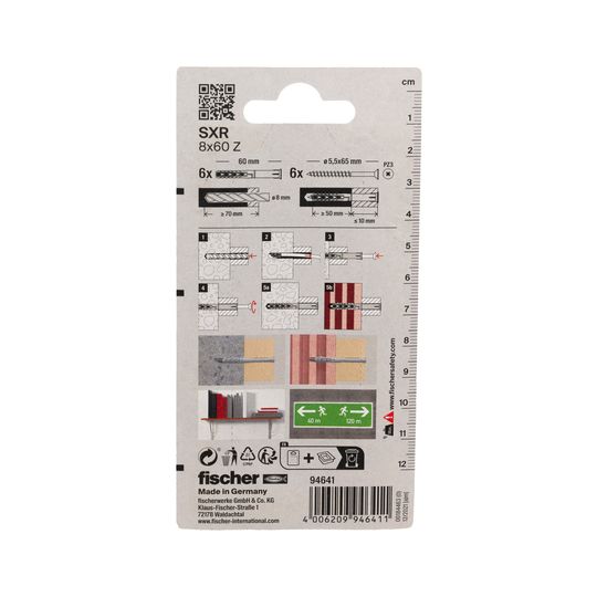 Langschaftdübel SXR 8x60,m.Senkkopfschraube,VE 6