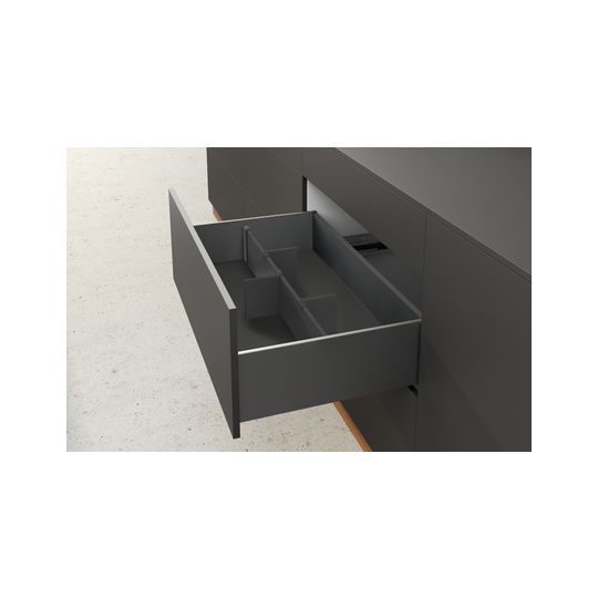 HETTICH Längsteiler OrgaStore 810/820/830 9278249; Ausführung: für Front- und Innenauszug; Werkstoff: Kunststoff; Einsatzbereich: Längsreling; Farbton: anthrazit; Basis: Längsteiler; Nennlänge min.: 300 mm; Höhe: 125 mm