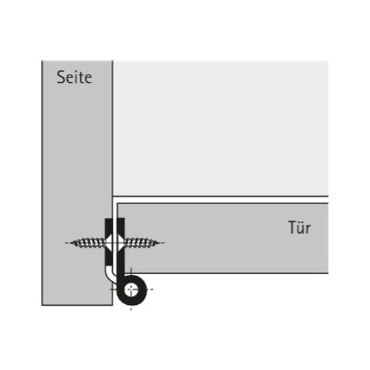 Anschlag zurückspringend, mit Stahl Achsstift, Breite = Breite des Türlappens