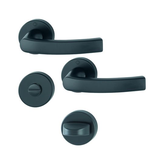 HOPPE Drückergarnitur Luxembourg 199/42KB/42KBS; Produkttyp: Drückergarnitur; Produkttyp (Hersteller): Drückergarnitur; Ausführung: Rosette; Befestigungsart Drückerrosette (außen): aufsteckbar; Befestigungsart Drückerrosette (innen): aufsteckbar; Befestigungsart Schlüsselrosette (außen): aufsteckbar; Befestigungsart Schlüsselrosette (innen): aufsteckbar; Befestigungstechnik: mit Stütznocken; Form Drückerrosette: rund; Form Schlüsselrosette (außen): rund; Form Schlüsselrosette (innen): rund; Vierkant: 8 mm; Material: Aluminium; Form Türgriff (innen): gebogen; Form Türgriff (außen): gebogen; Durchmesser Schlüsselrosette: 52 mm; Länge Türgriff (innen): 132; Länge Türgriff (außen): 132; Höhe Türgriff (innen): 56; Höhe Türgriff (außen): 56; Durchmesser Drückerrosette (außen): 52 mm; Durchmesser Drückerrosette (innen): 52 mm; Höhe Drückerrosette (außen): 9 mm; Höhe Drückerrosette (innen): 9 mm; Höhe Schlüsselrosette (außen): 9 mm; Höhe Schlüsselrosette (innen): 9 mm; Lagerung: wartungsfreies Gleitlager,mit Rückholfeder; Einsatzbereich: Objekttür; Türart: Vollblatt; Türwerkstoff: Holz,Stahl; Lochung: WC Schlitzkopf; Riegel-Vierkant: 8 mm; DIN-Richtung: DIN Links-Rechts; Farbe: schwarz; Farbton: schwarz matt; Oberfläche: eloxiert; Ausführung Vierkant: Vierkantstift; Türstärke min.: 37 mm; Türstärke max.: 47 mm; Norm: DIN EN 1906