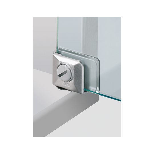 Glastürscharnier ohne Zuhaltung für einliegende Türen, Öffnungswinkel 105°, Einfache Montage per Klemmschraube, keine Bohrungen im Glas erforderlich, Inklusive vormontierter Rutschsicherung, Die Kl...