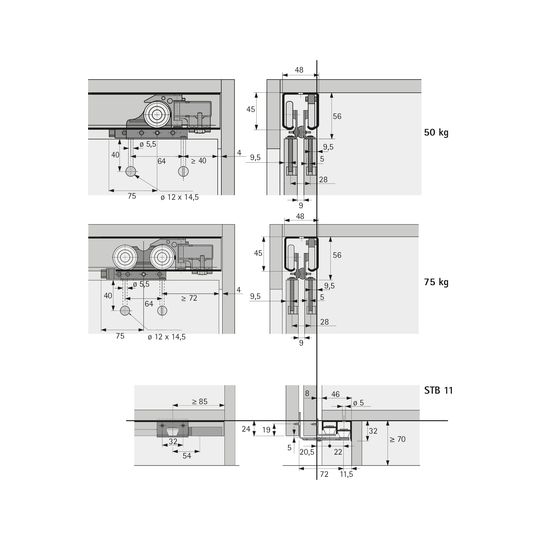 HETTICH Laufprofil TopLine 1 71113; Ausführung: oben; Werkstoff: Aluminium; Einsatzbereich: Möbel; Länge: 3.000 mm; Oberfläche: blank; Belastbarkeit: 50 kg; Basis: Laufprofil; Befestigungsart: zum ...