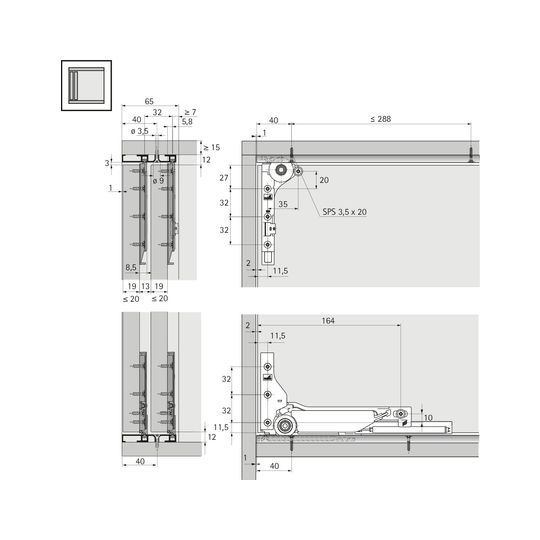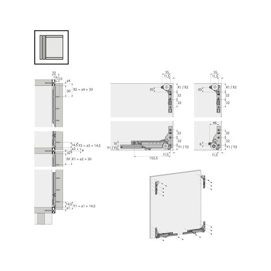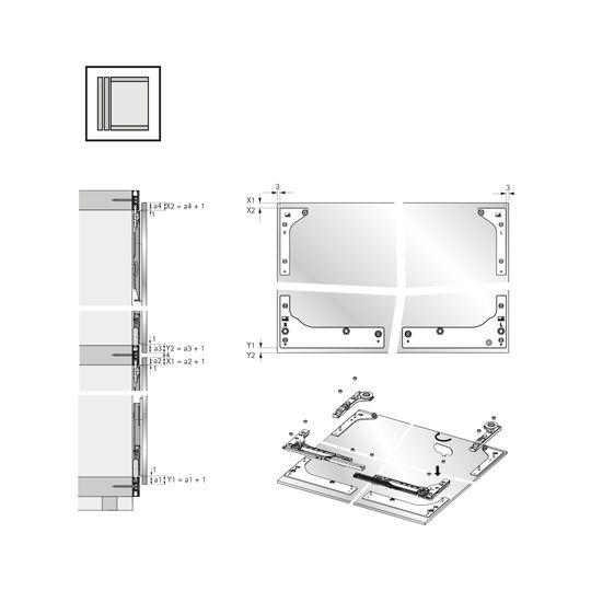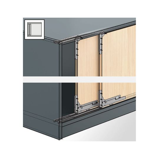 Set enthält alle erforderlichen Komponenten für 1 ungedämpfte Schiebetür aus Holz- oder 55 mm Aluminiumrahmenprofilen, Das Beschlagset kann ohne zusätzliches Ergänzungsset verwendet werden, Zur Mon...