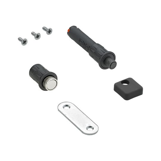 HETTICH Zuhaltung WingLine L Design 9266241; Ausführung: für untenlaufendes Schiebetürsystem,magnetisch; Werkstoff: Kunststoff; Befestigungsart: zum Einpressen; Montage: in den Konstruktionsboden; Einsatzbereich: Möbel; Farbe: grau; Basis: Zuhaltung; Befestigung: links oder rechts; Bodenrücksprung: 8 mm
