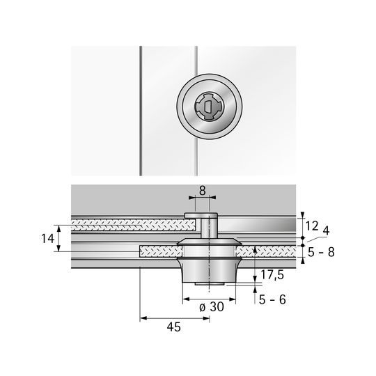 Zylinderglasschiebetürschloss Typ 326 mit Dreh-Druckfunktion, Aluminium Optik