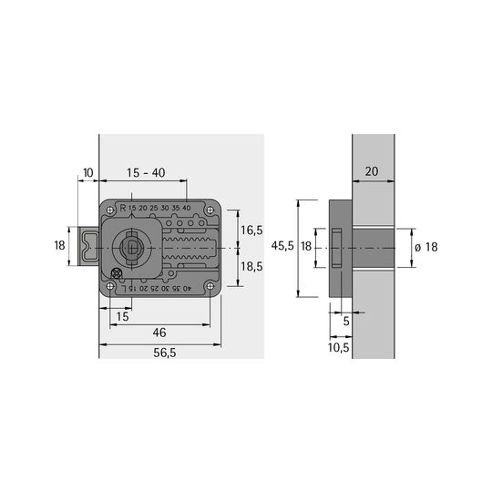 • Lieferzustand: rechts und auf Dornmaß 25 mm eingestellt