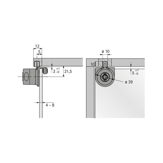 Zum Aufstecken ohne Bohrung, Für Glastüren, Stärke 4 - 8 mm, LAD rechtsschließend, Vernickelt hochglanz, Innenzylinder bitte separat bestellen, Zubehör bitte separat bestellen