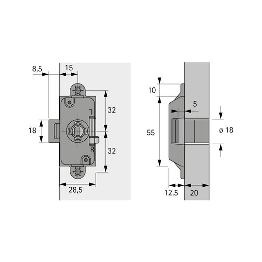 Zylinderkastenschloss Prestige 2000 Z23, ø18mm, 15 mm, 20 mm