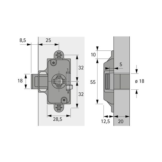 Zylinderkastenschloss Prestige 2000 Z23, ø18mm, 25 mm, 20 mm