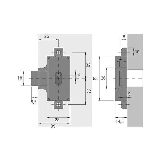 Drehstangenschloss, D 25, zum Anschrauben, rechts