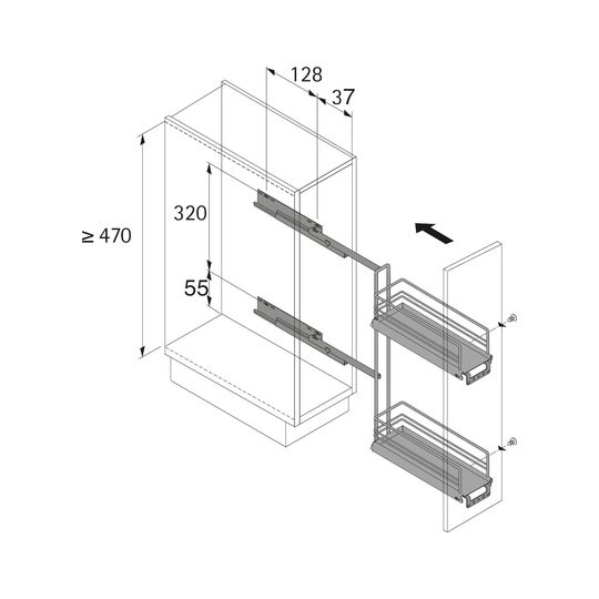 Mindestkorpustiefe KT mm470 mm