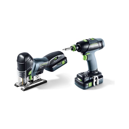 Akku-Bohrschrauber T 18+3, Pendelstichsäge PSC 420 EB, 2 x Akkupack BP 18 Li 4,0 HPC-ASI, Schnellladegerät TCL 6, CENTROTEC Werkzeugfutter, CENTROTEC Magnet-Bithalter BH 60 CE-Imp, FastFix Schnellspannbohrfutter 13 mm KC 13-1/2-K-FFP, Stichsägeblatt-Set: 1x WOOD FINE CUT S 75/2,5 und 1x WOOD UNIVERSAL S 75/4 FSG, Splitterschutz, Bitkassette BKS SYS3 D5 PZ TX 100 CE, Gürtelclip, Systainer SYS3 DF M 237