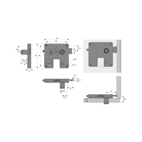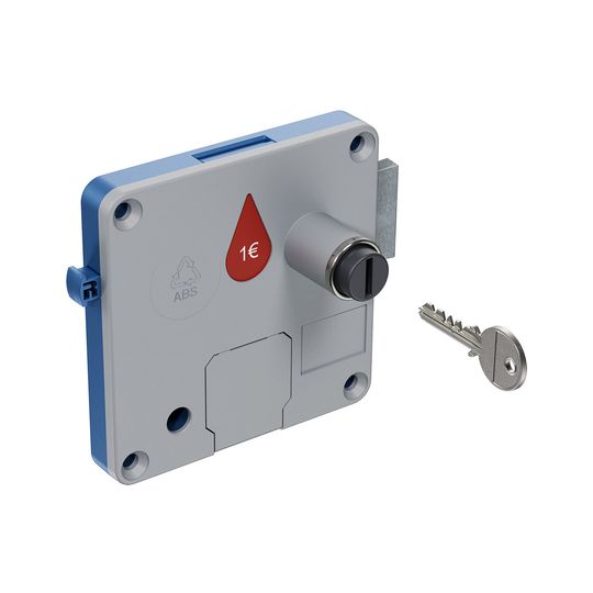 HETTICH Münzpfandschloss 70 Basic 9278074; Ausführung: mit Münzeinwurfschlitz,für 1 Euro Münzen,mit Schlüssel; Material: Kunststoff; Befestigungsart: zum Anschrauben; Form: abgerundet; Basis: Münzp...
