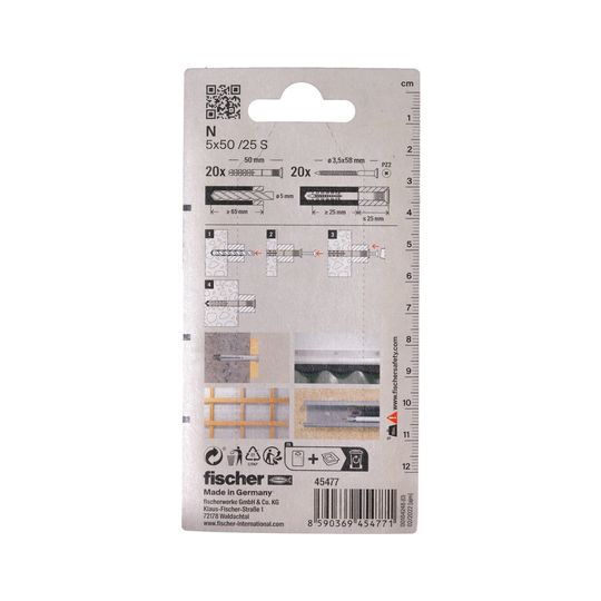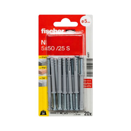Nageldübel N 5x50/25 mit Schraube 3,5x58Z,VE 20