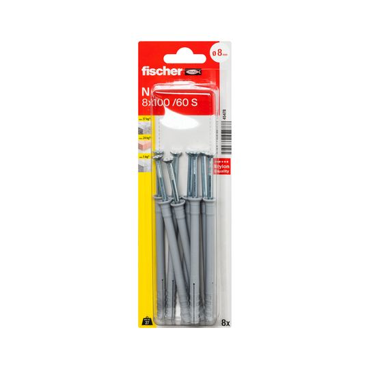 Nageldübel N 8x100/60 mit Schraube 5x105Z,VE 8