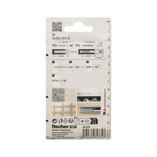 Nageldübel N 8x80/40 mit Schraube 5x85Z,VE 10